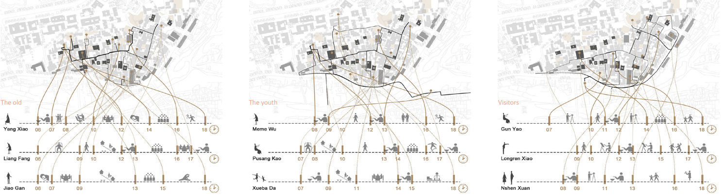 Through research on the locals and travelers, I diagrammed their activity patterns to further seek design opportunities.