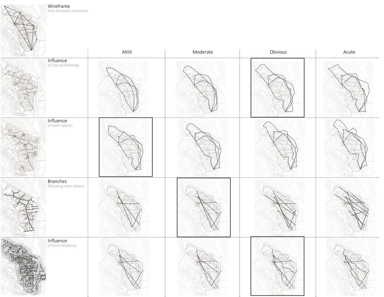I coded to generate the design for a skywalk route, and I iterated to find the optimal set of parameters.