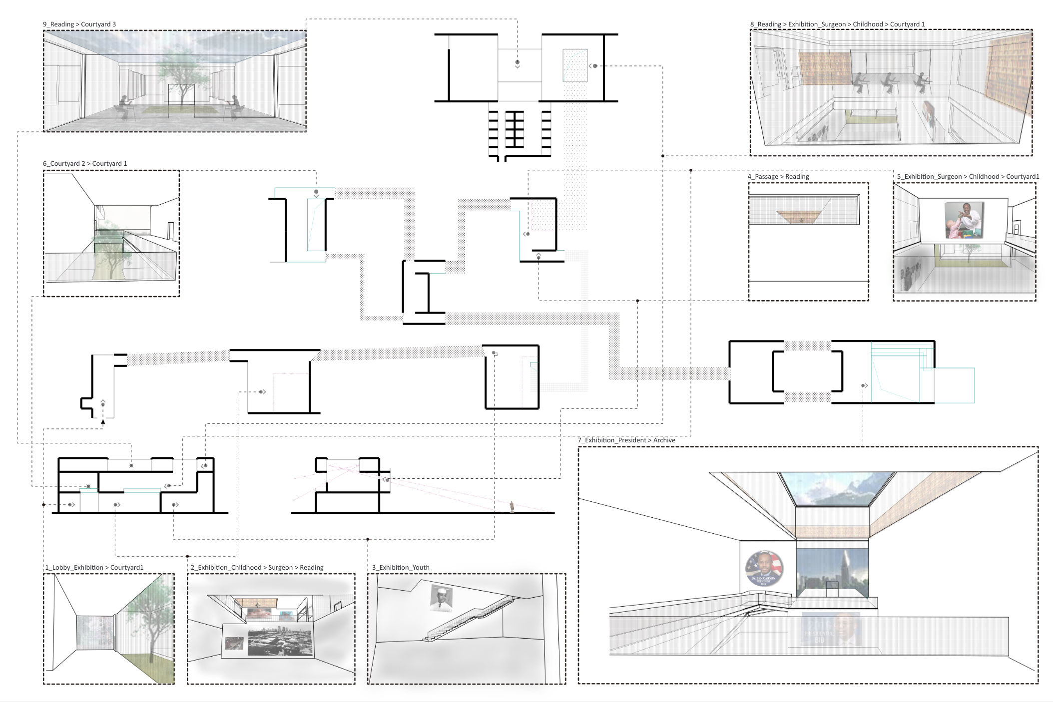 I created this diagram to efficiently inspect user flow, plan, space, and light design simultaneously for potentials of optimization.