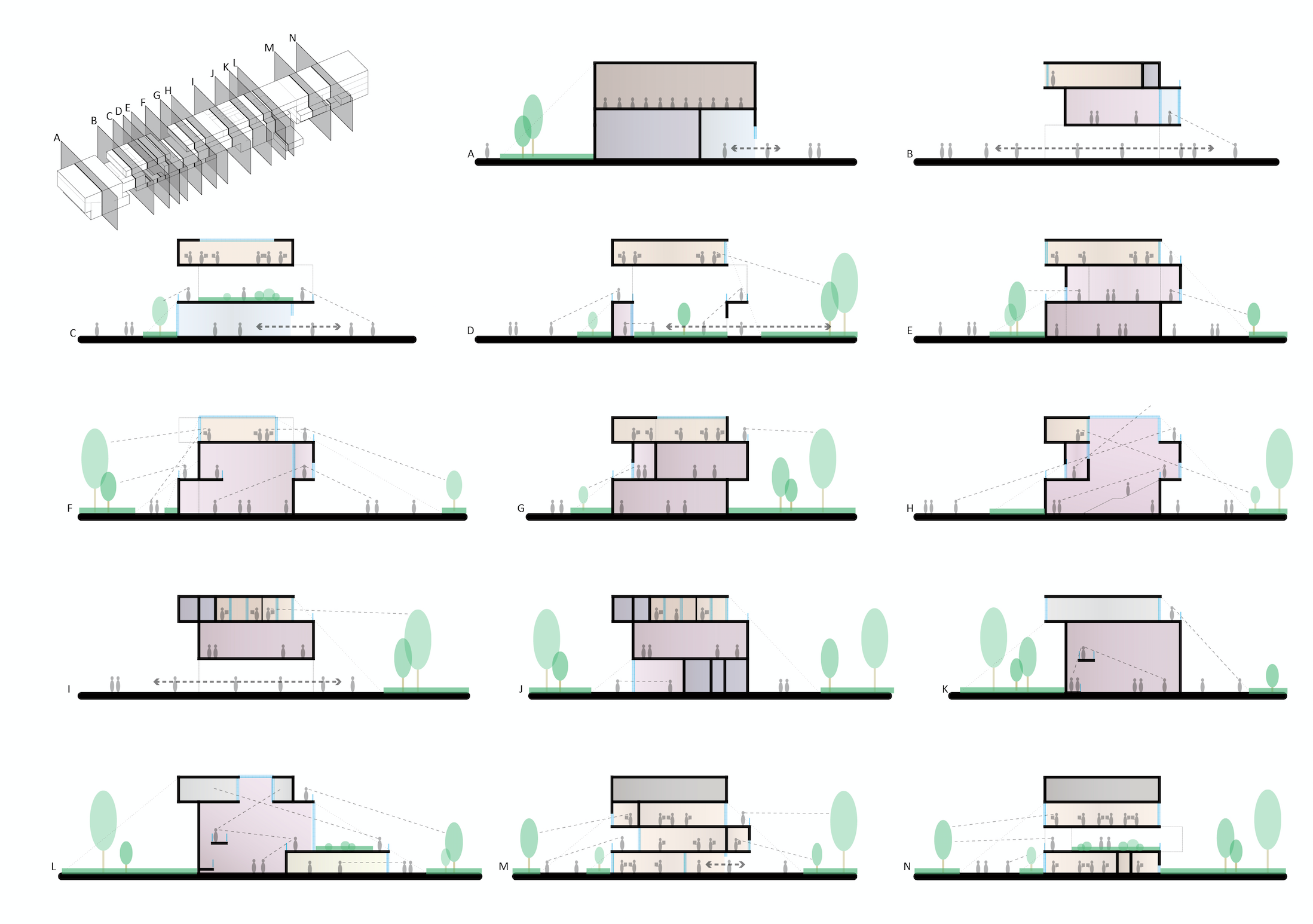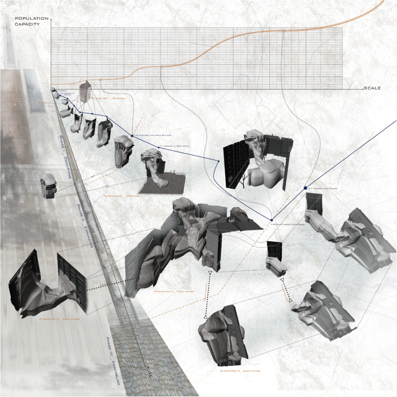 I diagrammed to inspect all types of spaces to scrutinize the experience of people inside or nearby.