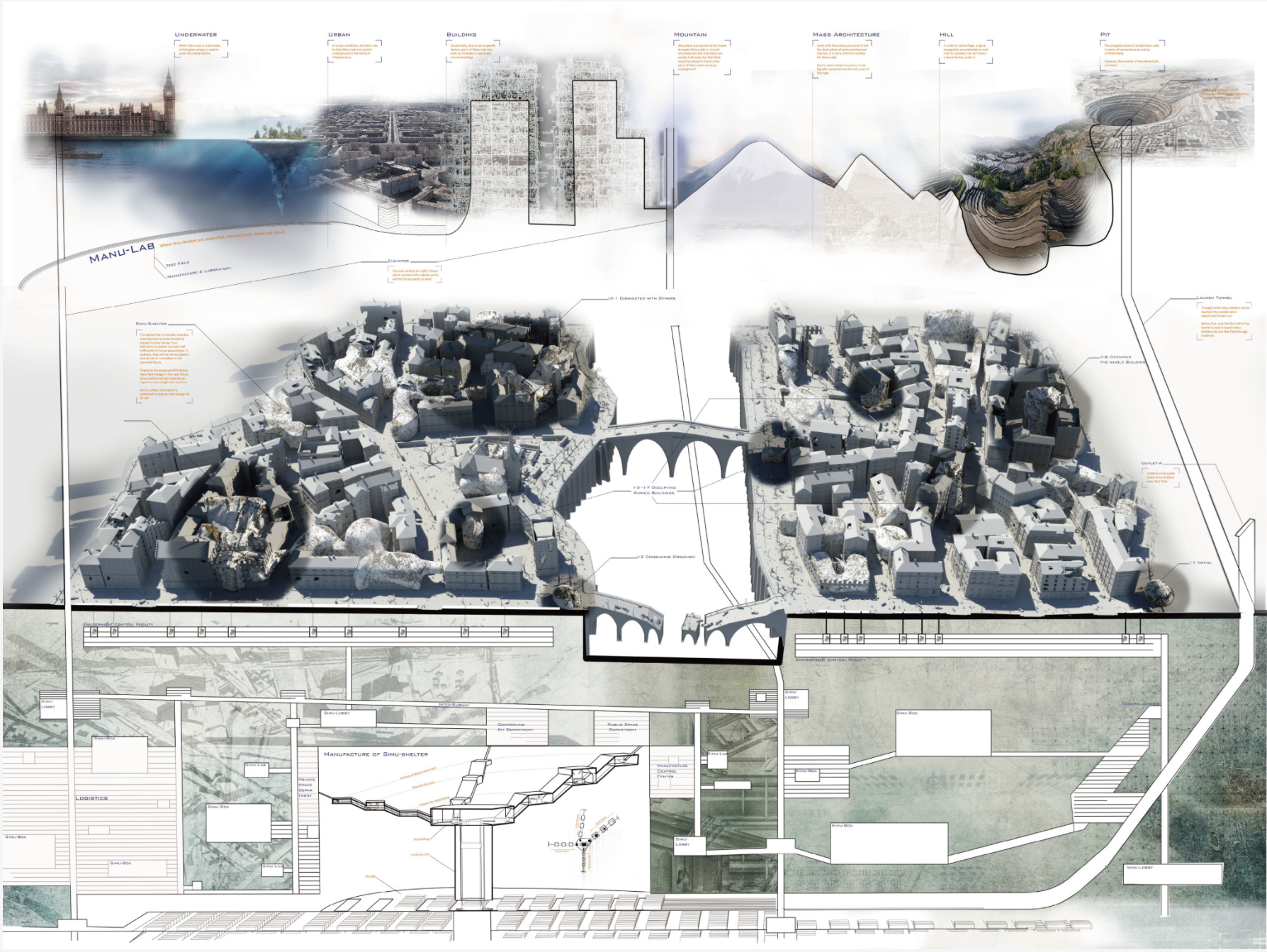 We can live in a shelter that simulates any environment we want! The shelter can "eat" post-war debris to convert substances.