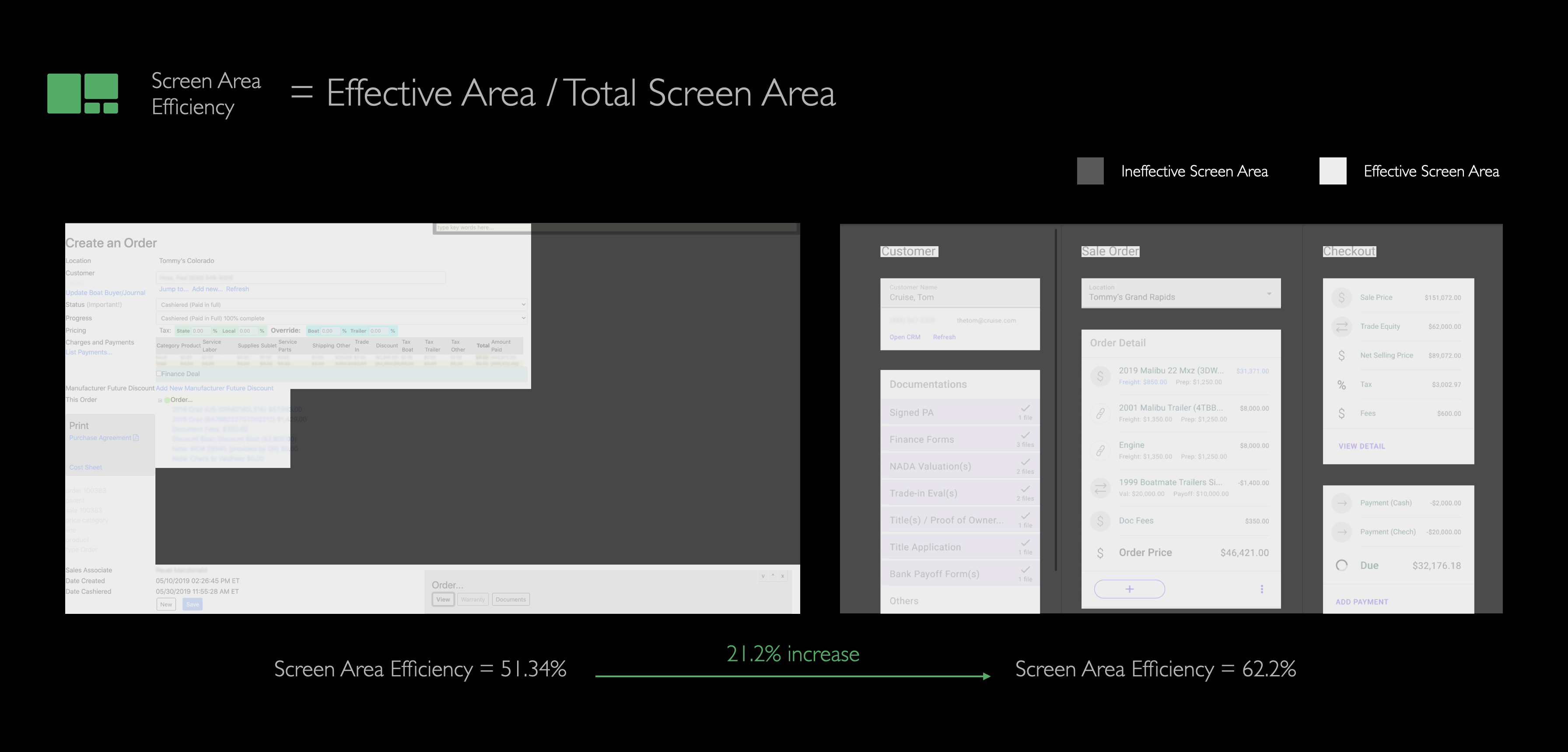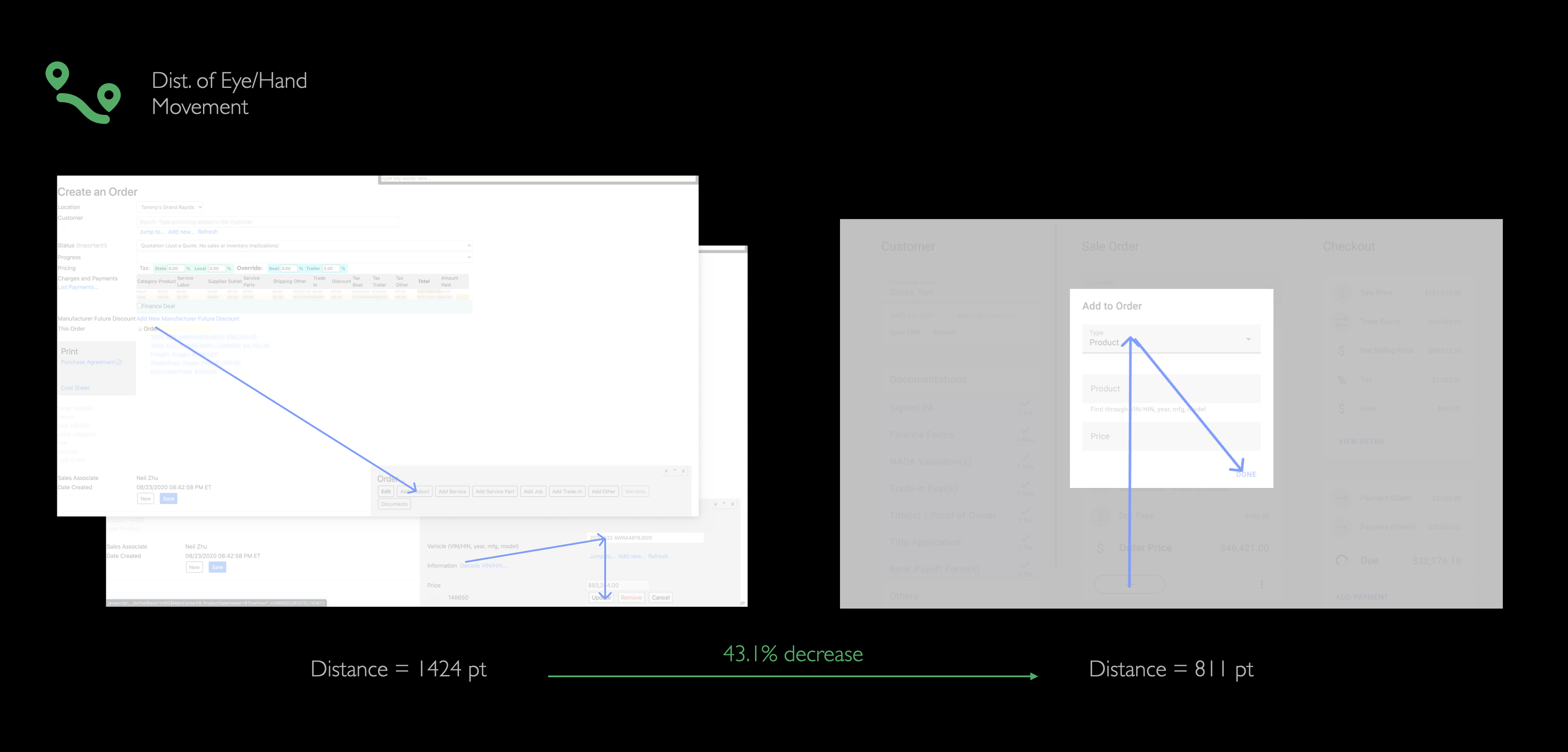 The ultimate goal of the redesign project was to create a modern experience that could boost working efficiency. Therefore, one of the most important metrics is the average time spent by salespeople to finish their jobs on the system. Because the legacy system was outdated in both UX but also performance, so we set an ambitious goal: