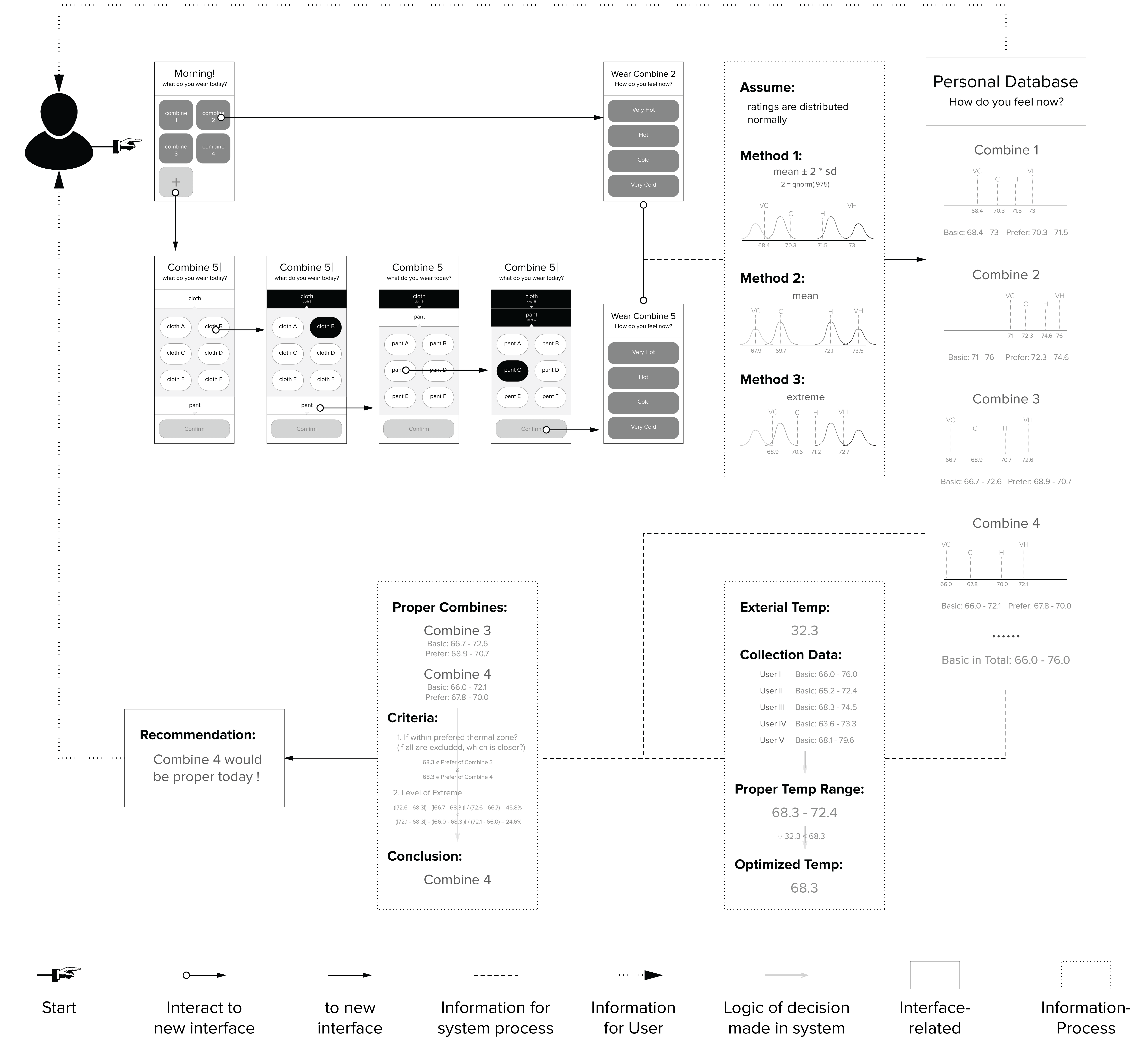 Version 2: Users got quick feedback on their outfit choice, and colors of the background change accordingly. Colors of the outfit choices implied their warmth tendency.